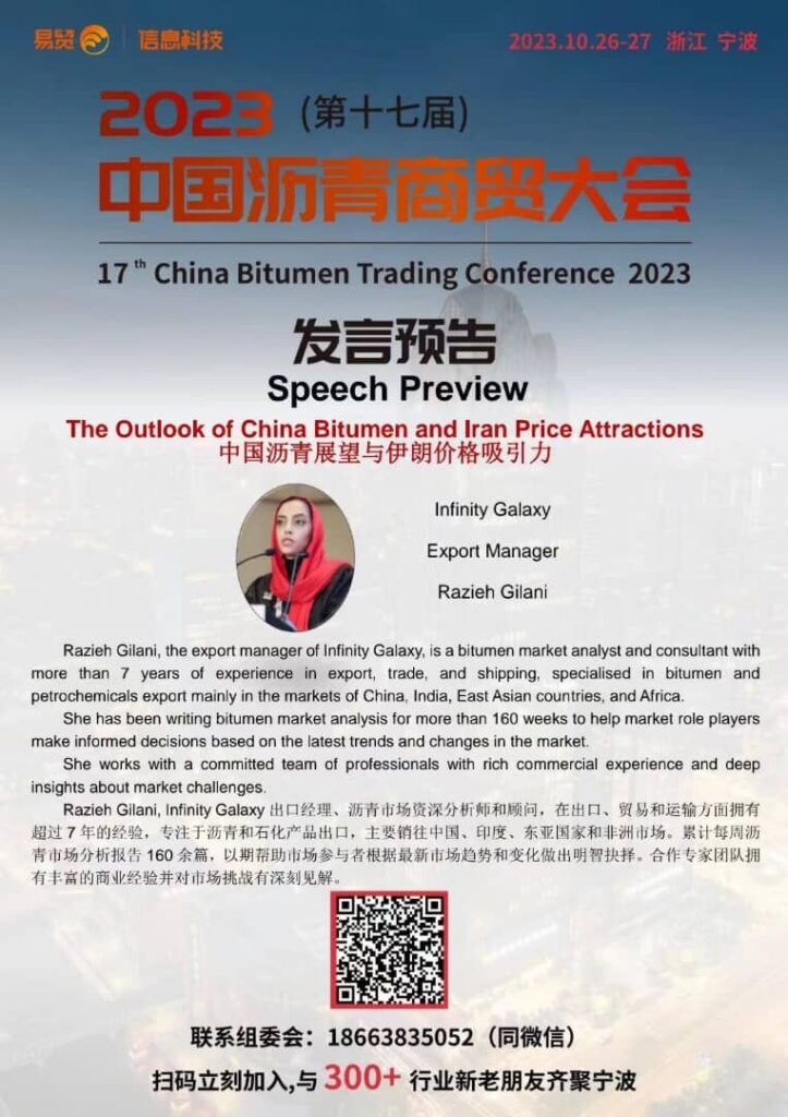The 17th International China Bitumen Trading Conference will be held on October 26th to 27th 2023 in China. Same as the previous year, Infinity Galaxy is once again poised to actively participate in this conference.