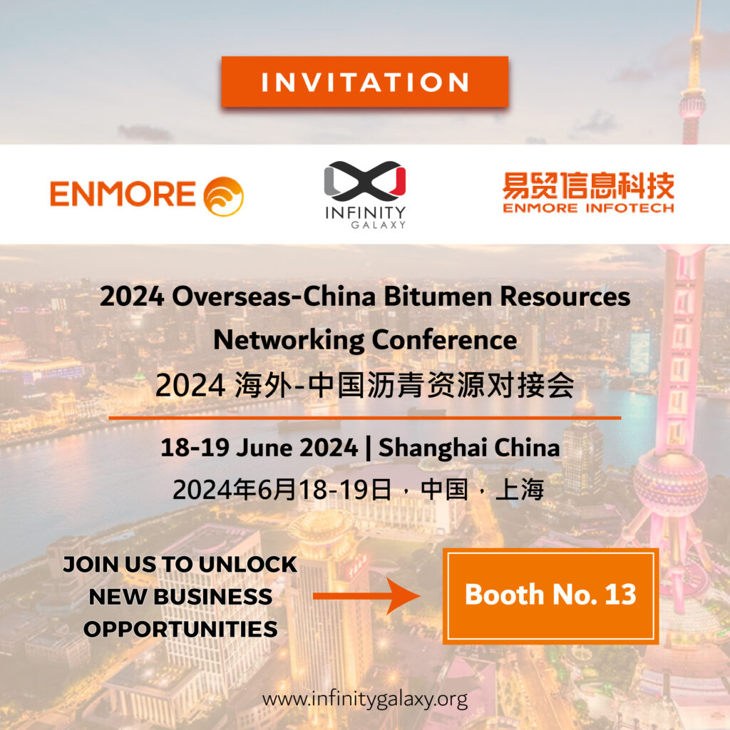 The 2024 Overseas China Bitumen Resources Networking Conference, hosted by Enmore group, will be held from June 18 -19, at the Marriott Hotel Hongqiao, Shanghai, China. Over 30 bitumen refineries, international traders, and transportation companies from the Middle East and many other countries will present in this conference. Infinity Galaxy is going to present in […]